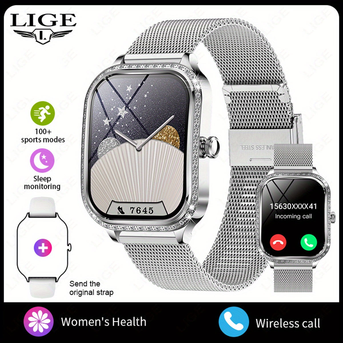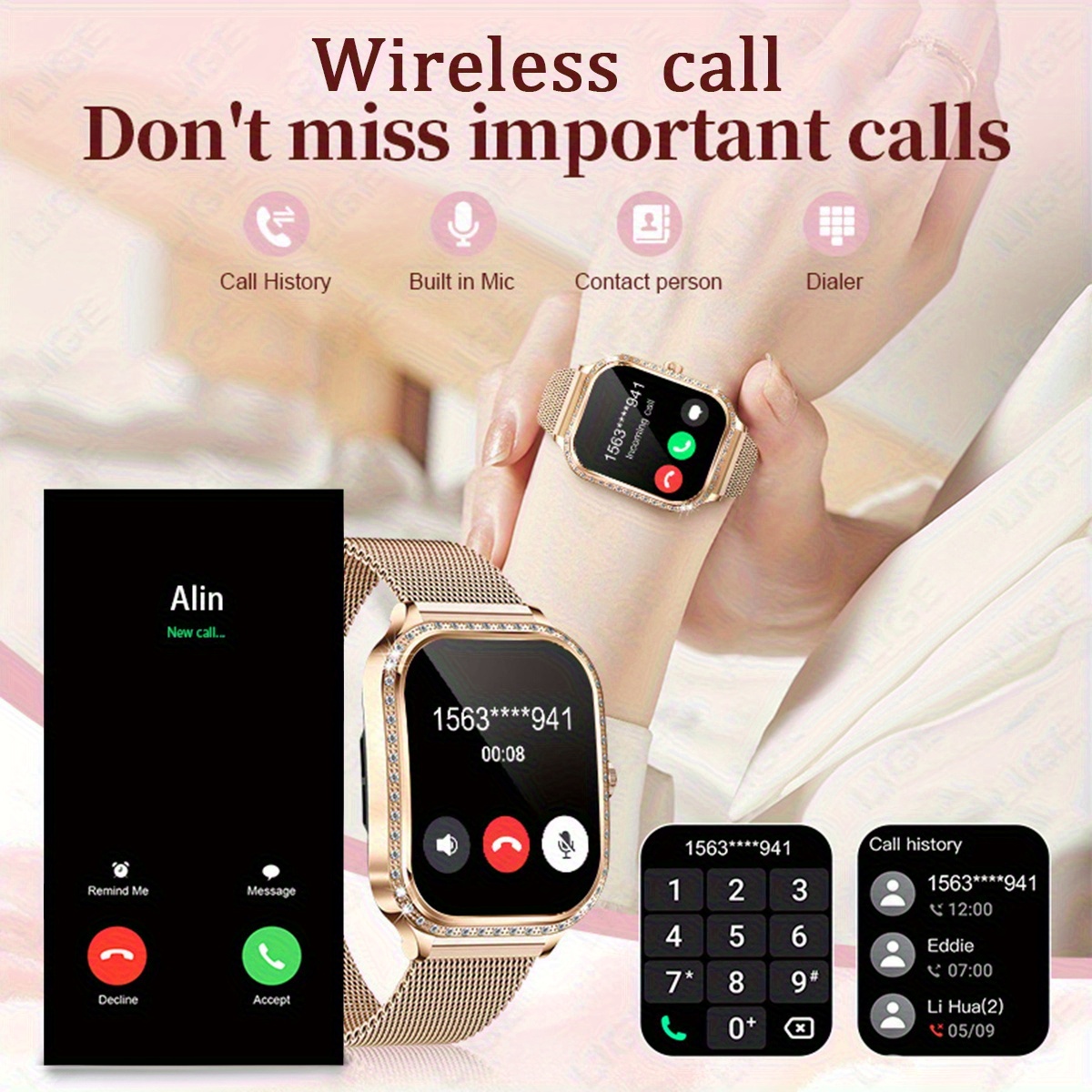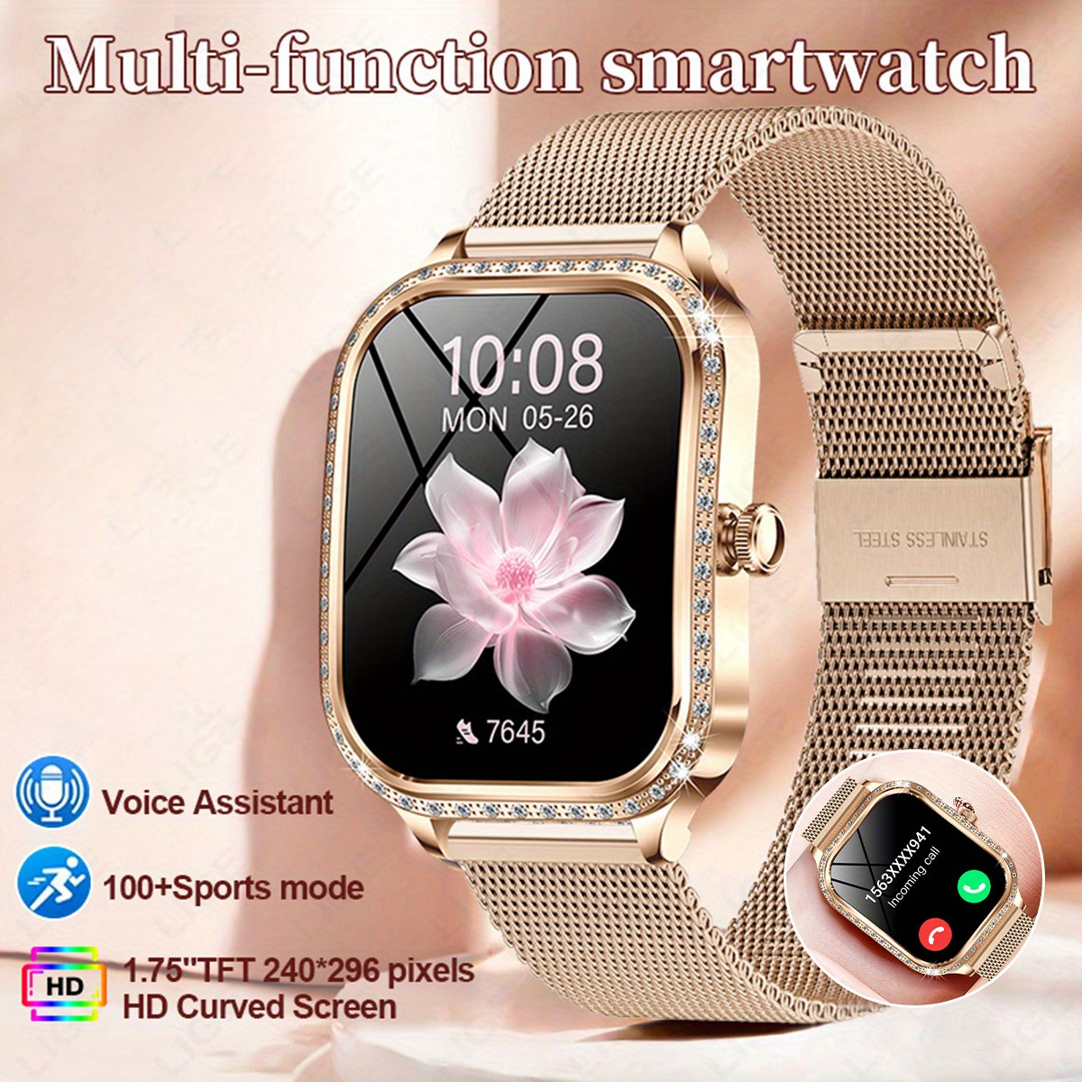 21 Febbraio 2026Orologio Intelligente LIGE Elegante per Donne e Ragazze, Schermo Curvo HD 4.45 cm TFT, Chiamate Wireless e Assistente Vocale, Oro Rosa con Cristalli Decorativi, 100+ Modalità Sportive, Funzioni Femminili, Controllo Musica, Avvisi Messaggi, Meteo, Compatibile con Android/iPhone, Ideale per Fitness e Uso Quotidiano, Regalo Perfetto per Coppie o Compleanni, Halloween, Natale, Festa della Mamma, Ringraziamento per Amiche/Amori