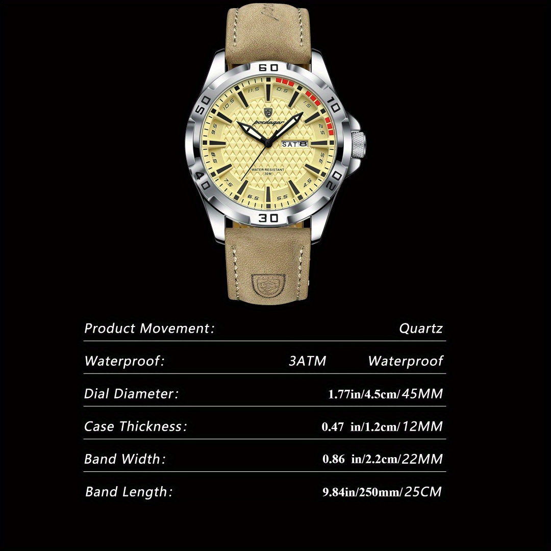 25 Febbraio 2026Orologio Sportivo di Lusso Calendario Impermeabile, Quarzo Casual da Uomo per Tutti i Giorni, Monitoraggio Fitness, Elegante e Stiloso, Movimento Affidabile, Display Data, Analogico Perfetto per Uomini Attivi ed Eleganti
