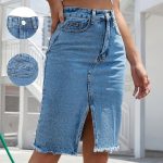 Gonna in denim a vita alta, gonna midi da donna, elasticizzata