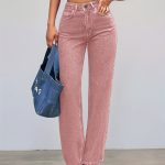 28 Gennaio 2026Pantaloni lunghi da donna a gamba dritta con orlo rinforzato argentato, perfetti da abbinare a un top corto bianco per un outfit alla moda di ispirazione coreana