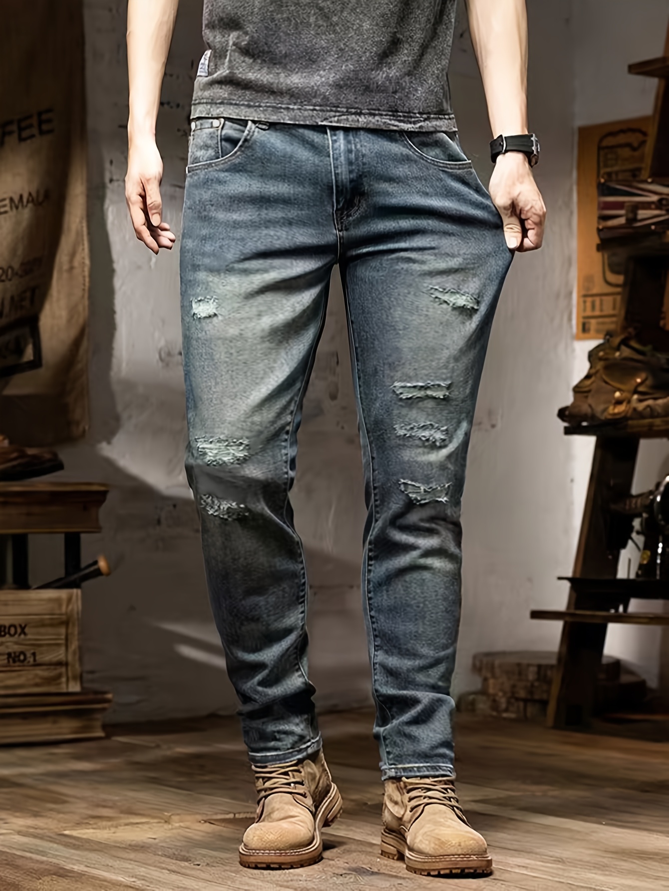 25 Febbraio 2026Pantaloni lunghi da uomo in denim stretch, stile streetwear, jeans blu sbiaditi, adatti per ciclismo e tutte le stagioni