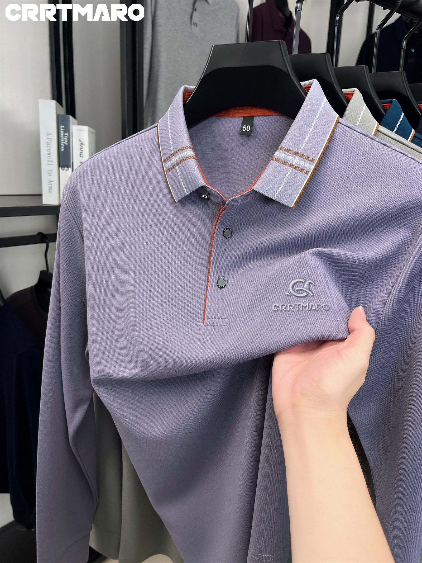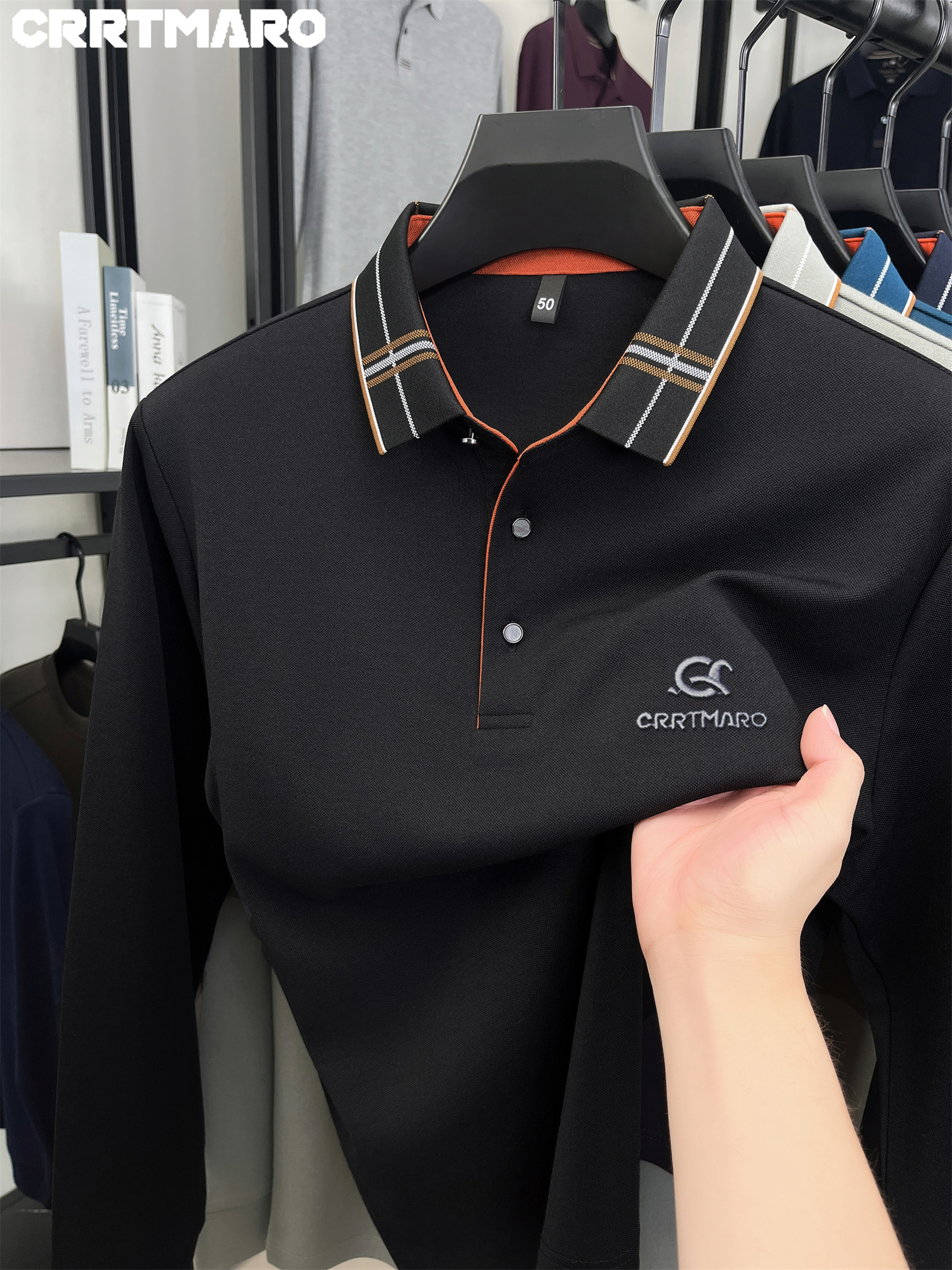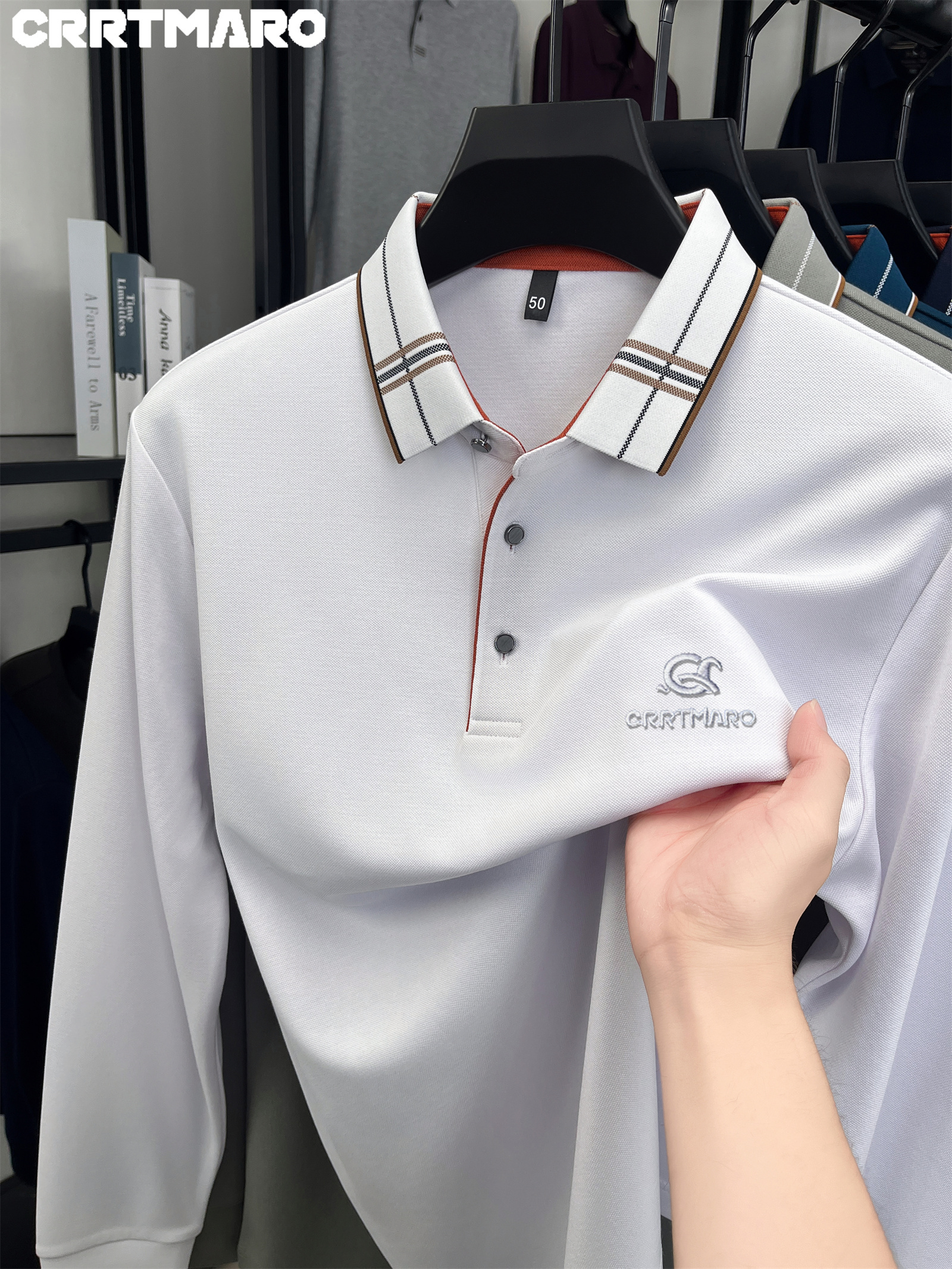 15 Aprile 2026Polo Cartama CRRTMARO Maglia a maniche lunghe ricamata di alta qualità, nuova T-shirt autunnale a righe spazzolate senza cuciture e -stiratura a tinta unita con risvolto, Youzi Sheep