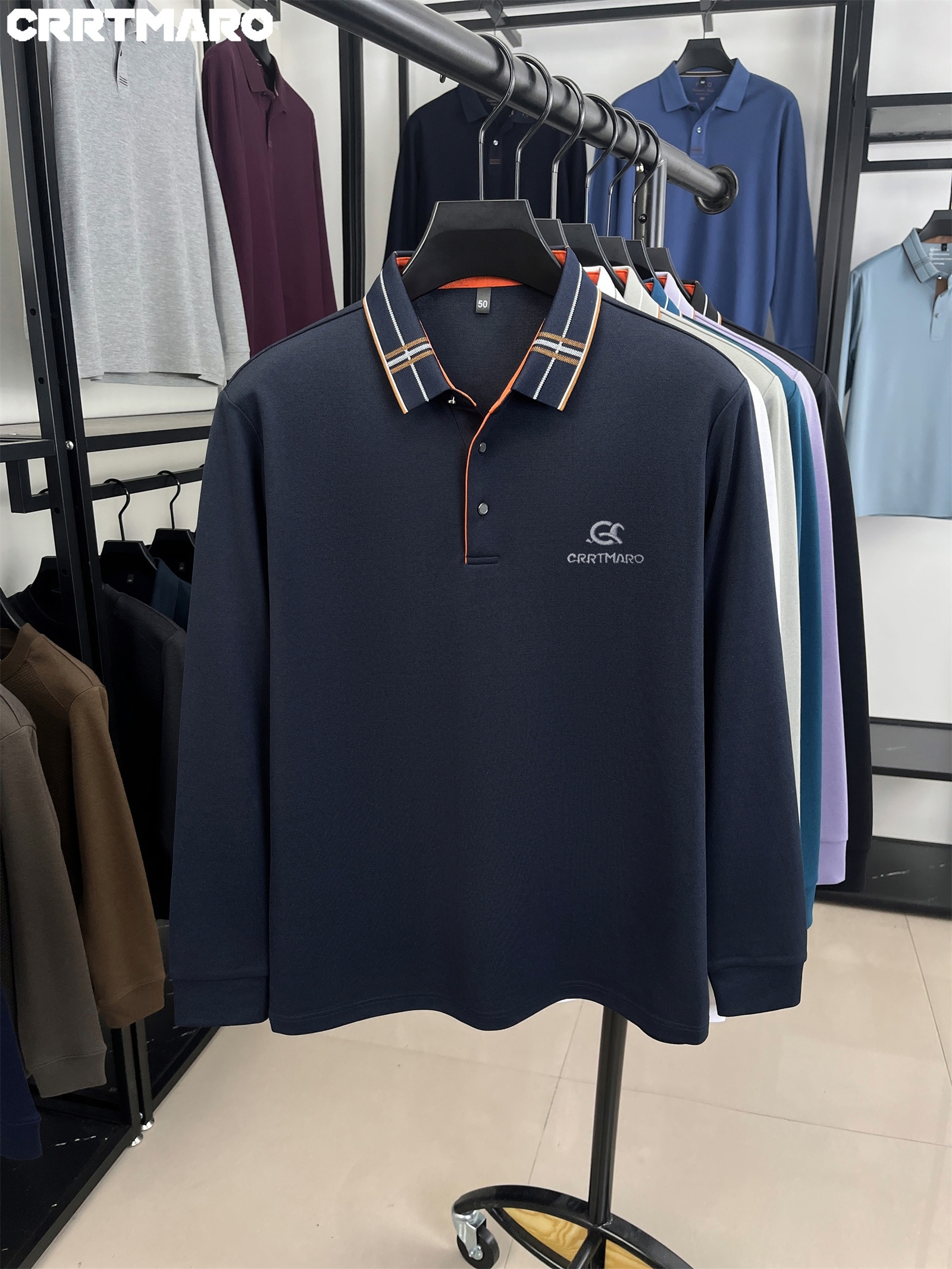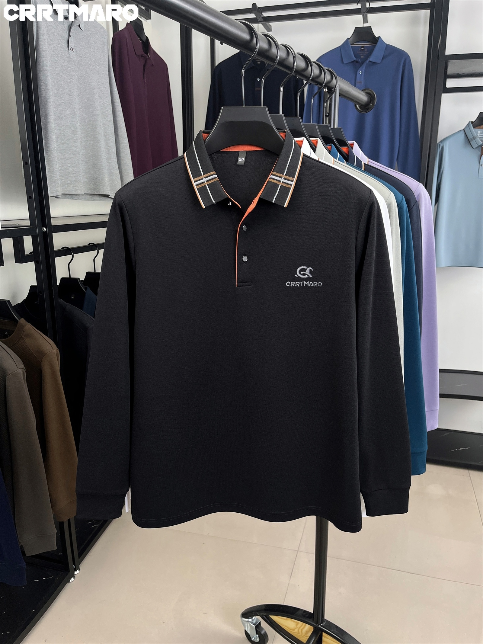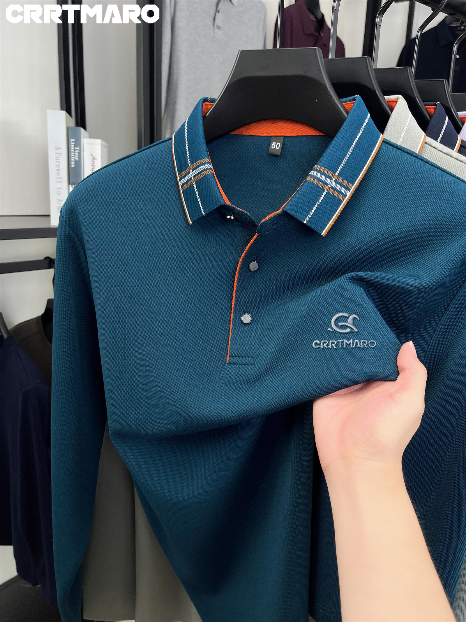 15 Aprile 2026Polo Cartama CRRTMARO Maglia a maniche lunghe ricamata di alta qualità, nuova T-shirt autunnale a righe spazzolate senza cuciture e -stiratura a tinta unita con risvolto, Youzi Sheep