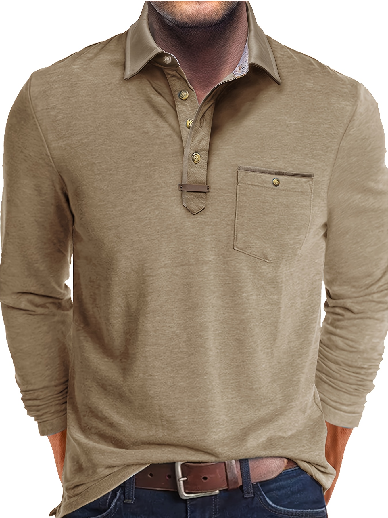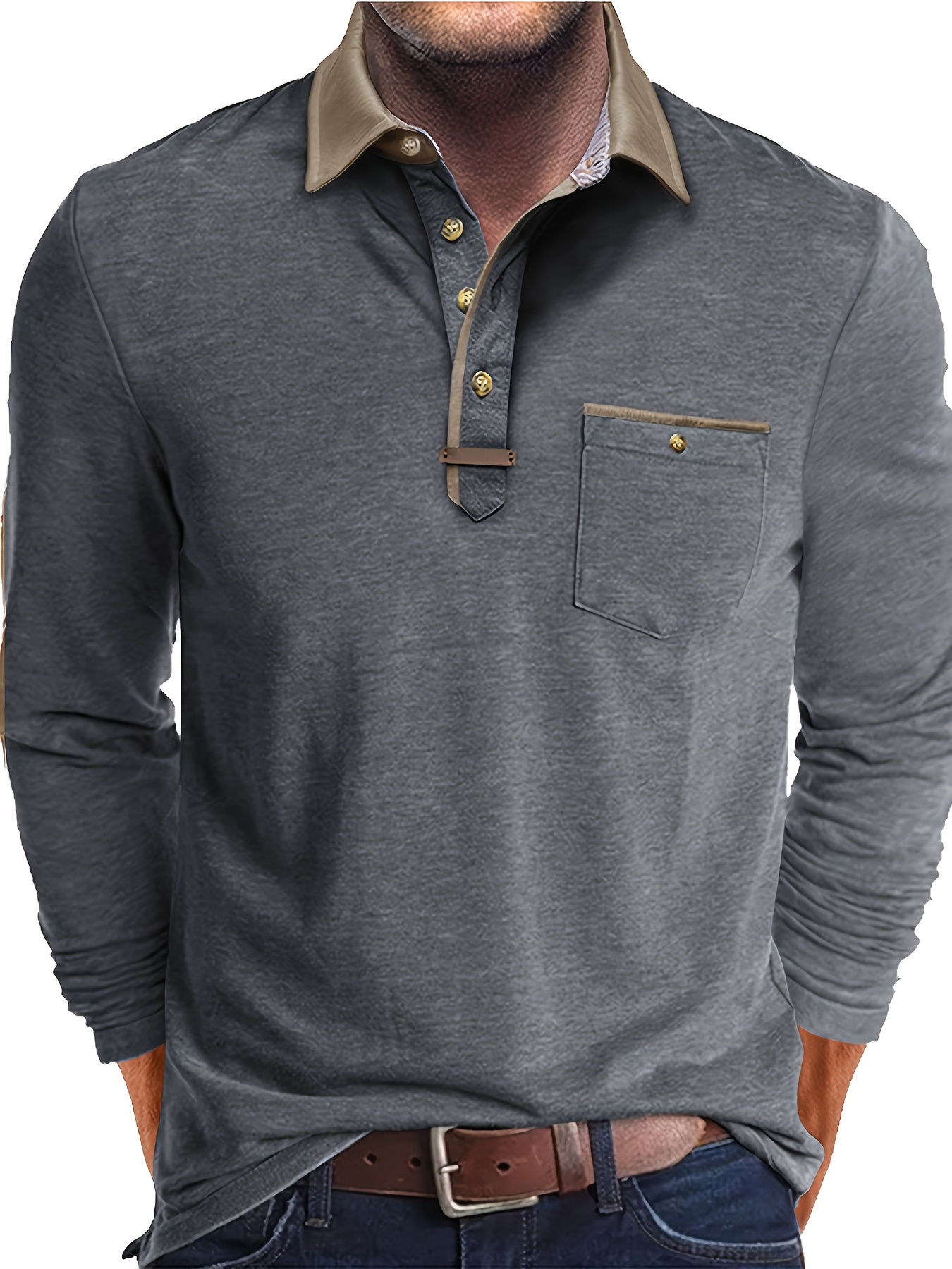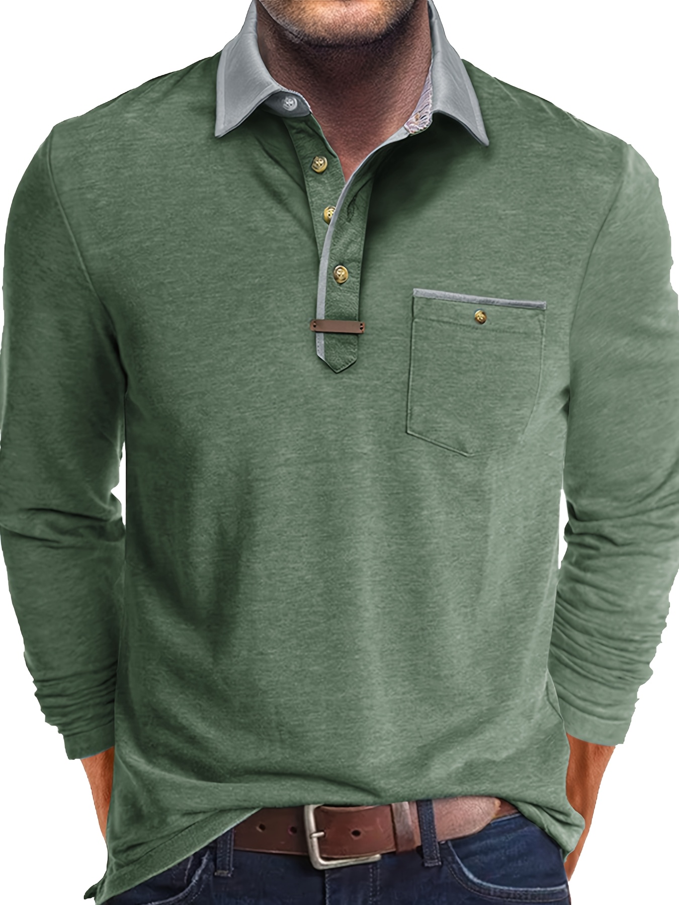 28 Gennaio 2026Polo da uomo taglie forti alla moda a maniche lunghe con colletto e taschino a colori contrastanti, top stile Henley, taglie forti