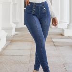 Pantalone Jeans Skinny Donna con Doppio Bottoncino