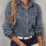 Camicia di jeans a maniche lunghe da donna con polsini a blocchi