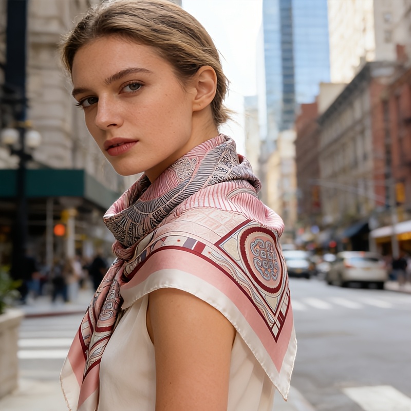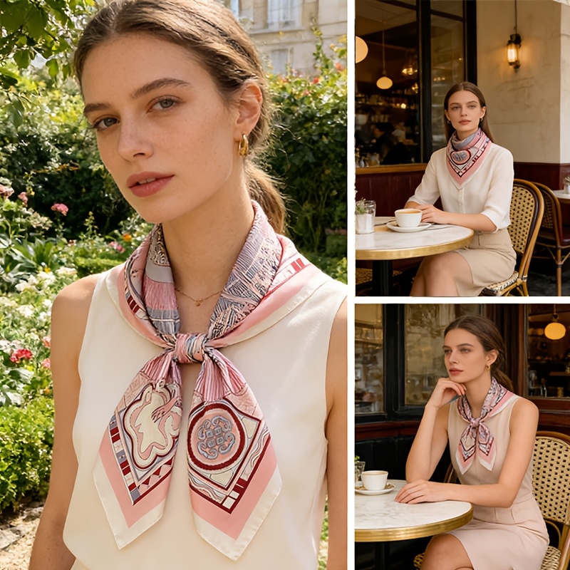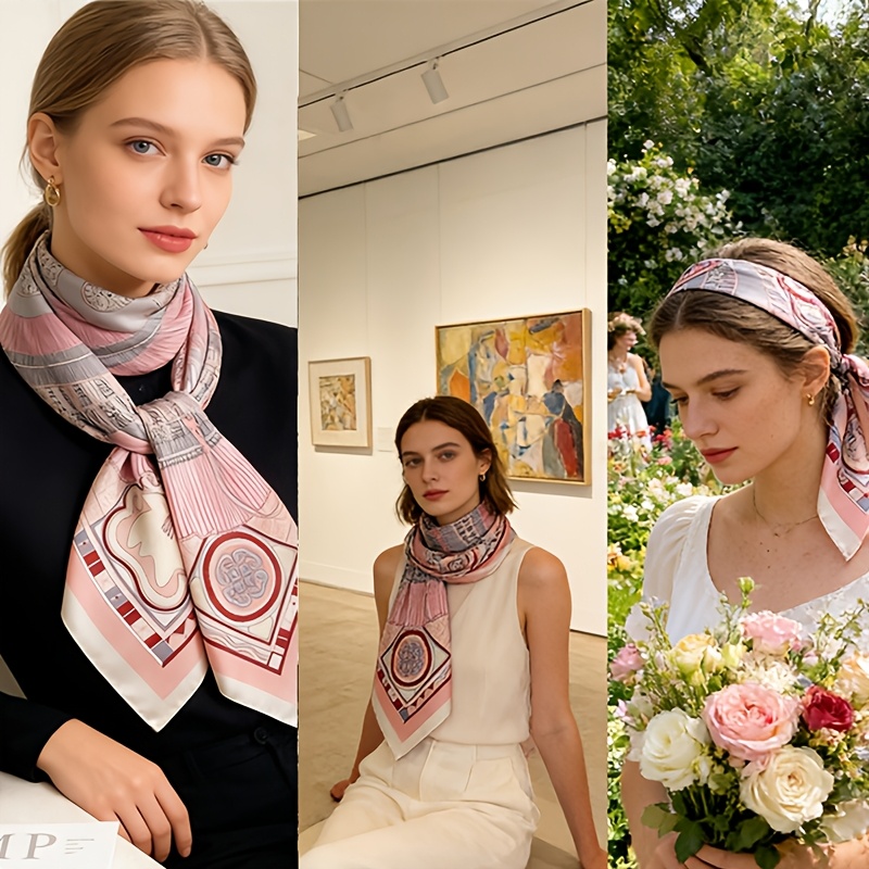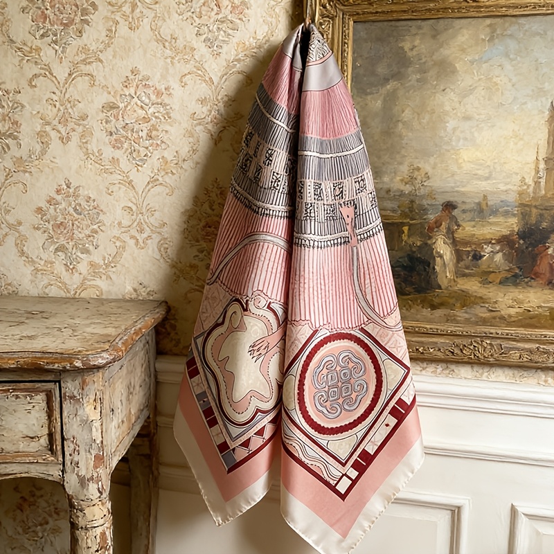 15 Aprile 2026Sciarpa in seta vintage geometrica totem europea realizzata in seta di gelso, con sciarpa quadrata in raso rosa stile palazzo che può essere indossata a strati o da sola, un accessorio di moda versatile con un design squisito, una sensazione lussuosa e una versatilità elegante