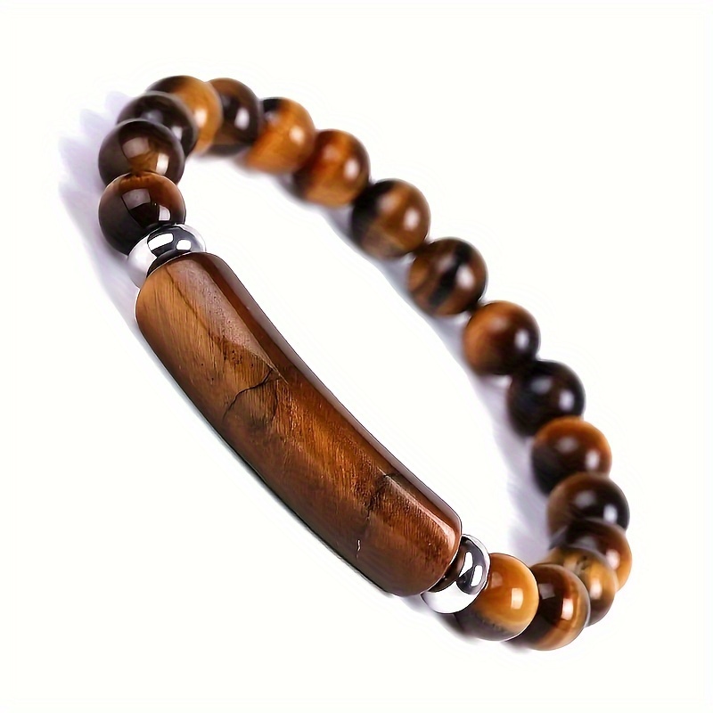 Regalo Bracciale Uomo Bohemien con Perle Naturali – Multi-Livello in Occhio di Tigre Vulcanico e Agata,