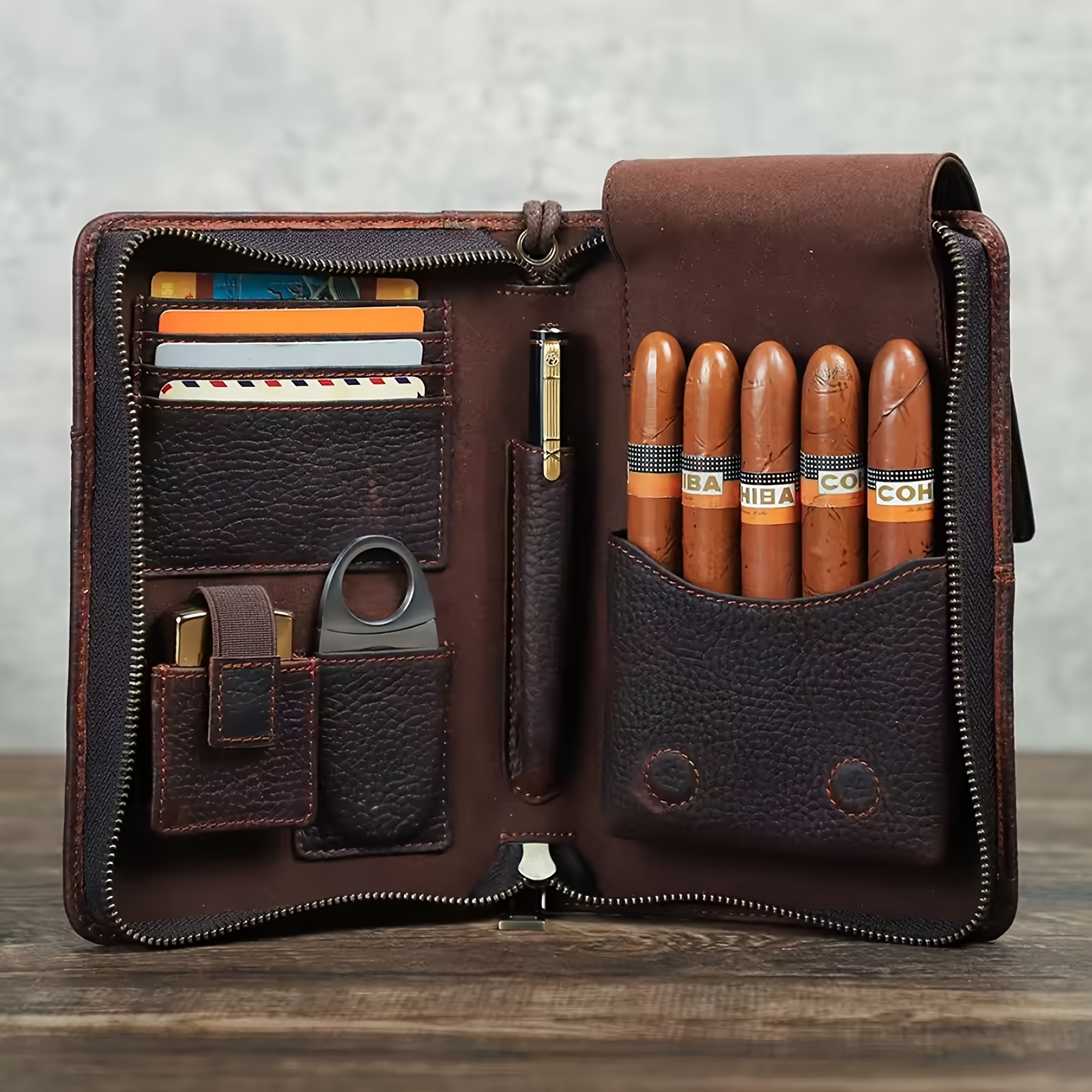 28 Febbraio 2026Set Borsa Portatile per Sigari in Finta Pelle con Cerniere Dorate e Organizzatore Multiscomparto – Astuccio da Viaggio per Sigari, Accendini ed Accessori – Resistente Bustina Umidificante Stile Humidor Ideale Amanti dei Sigari