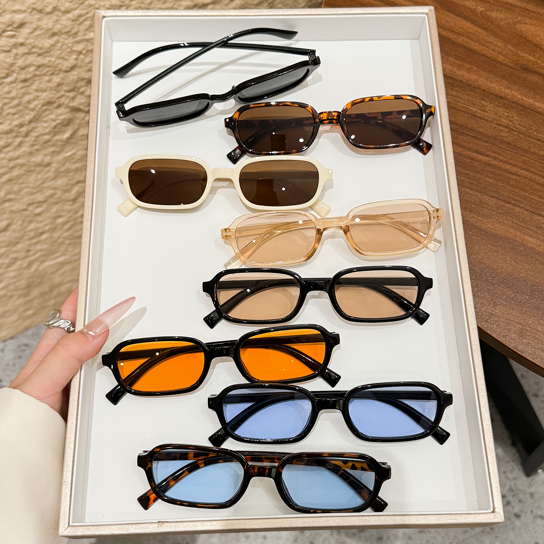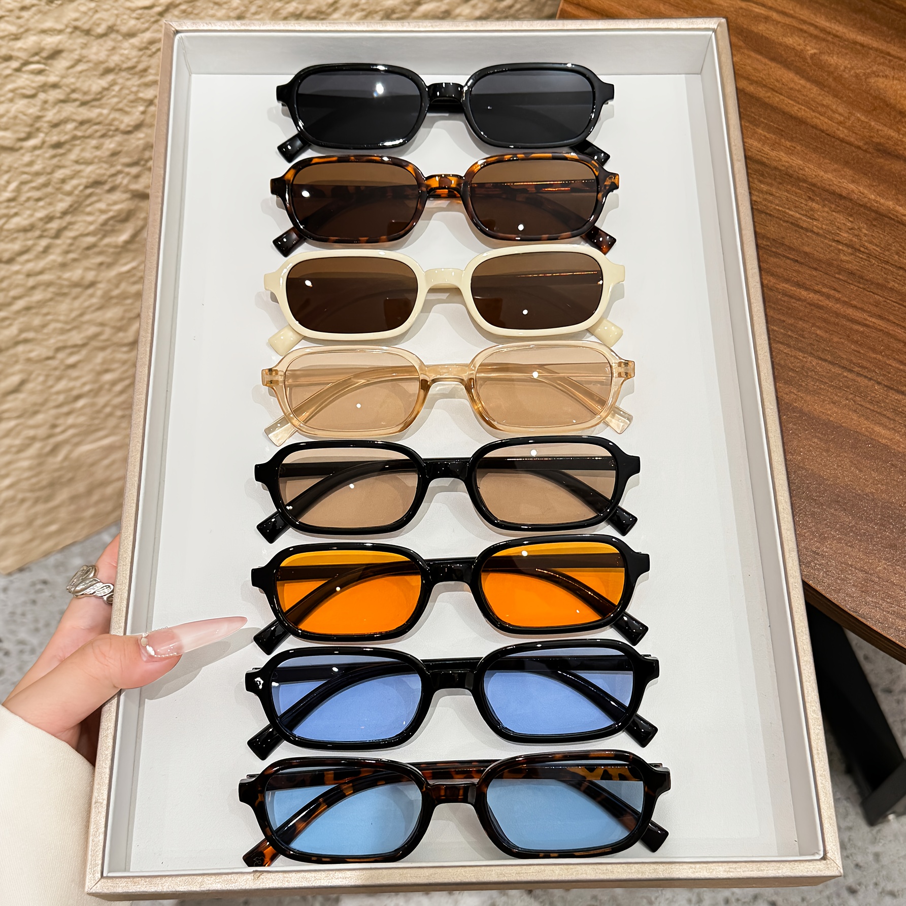 23 Febbraio 2026Set di 8 occhiali da donna con montatura rettangolare | Occhiali multicolore in stile minimalista facile e di alta gamma, protezione UV400, essenziali e alla moda per vacanze al mare, feste notturne e festival musicali