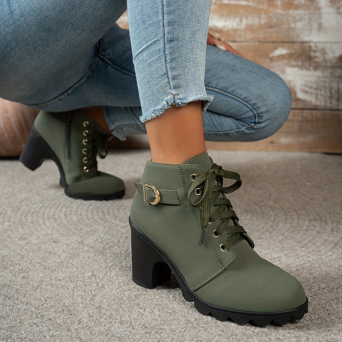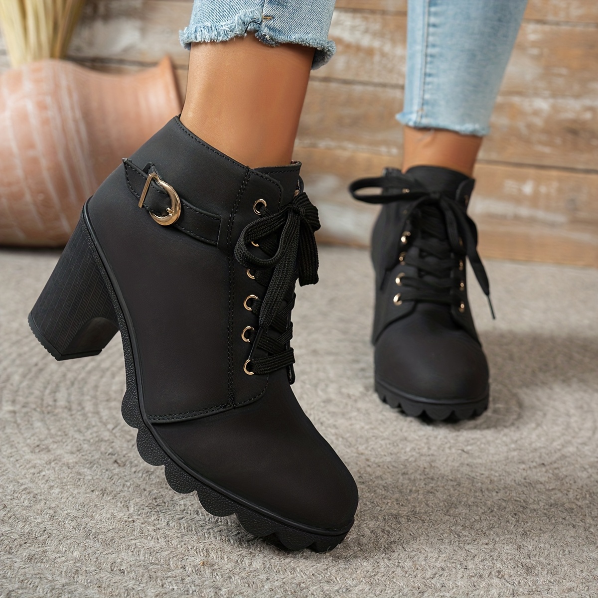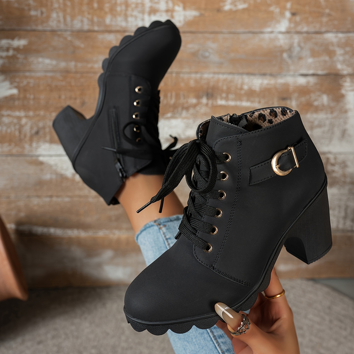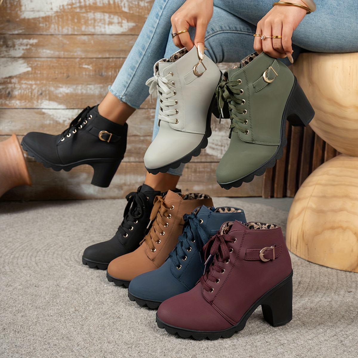 Stivaletti alla caviglia con tacco largo e fibbia di alta qualità, scarpe da donna