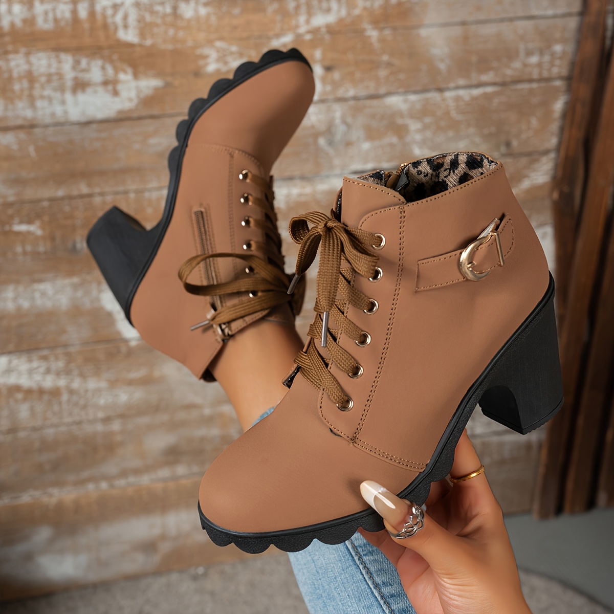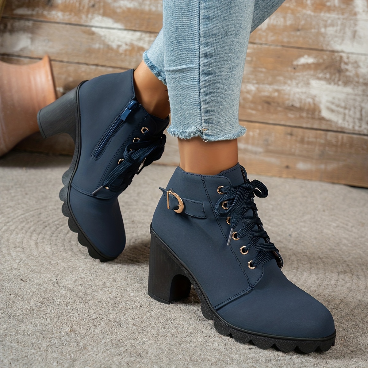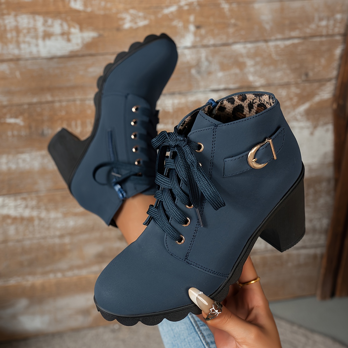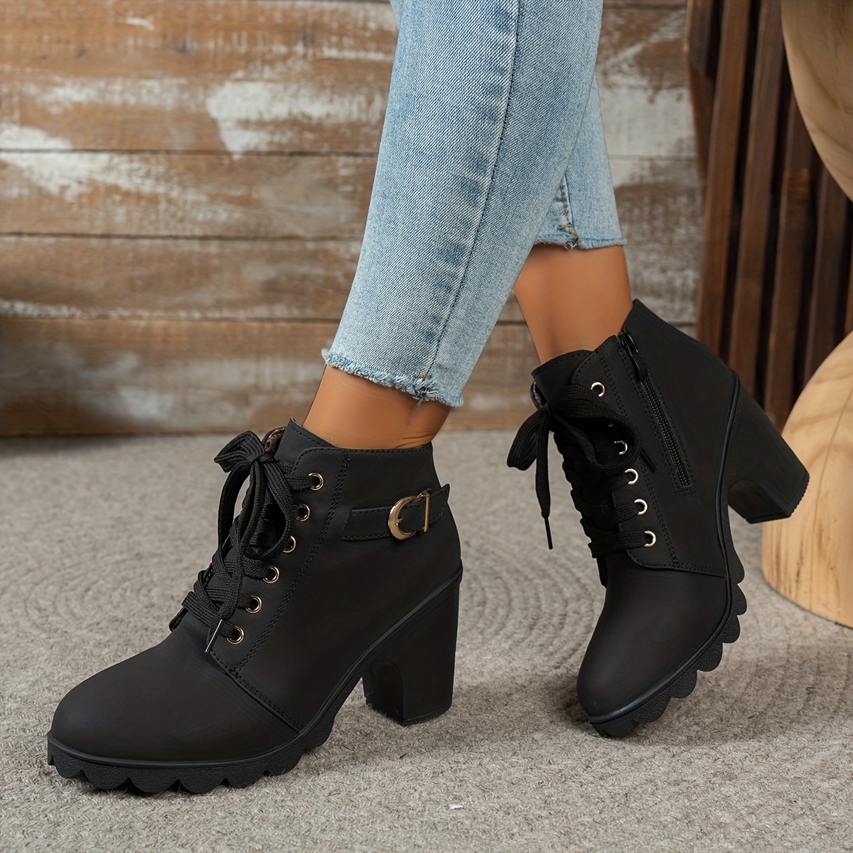Stivaletti alla caviglia con tacco largo e fibbia di alta qualità, scarpe da donna