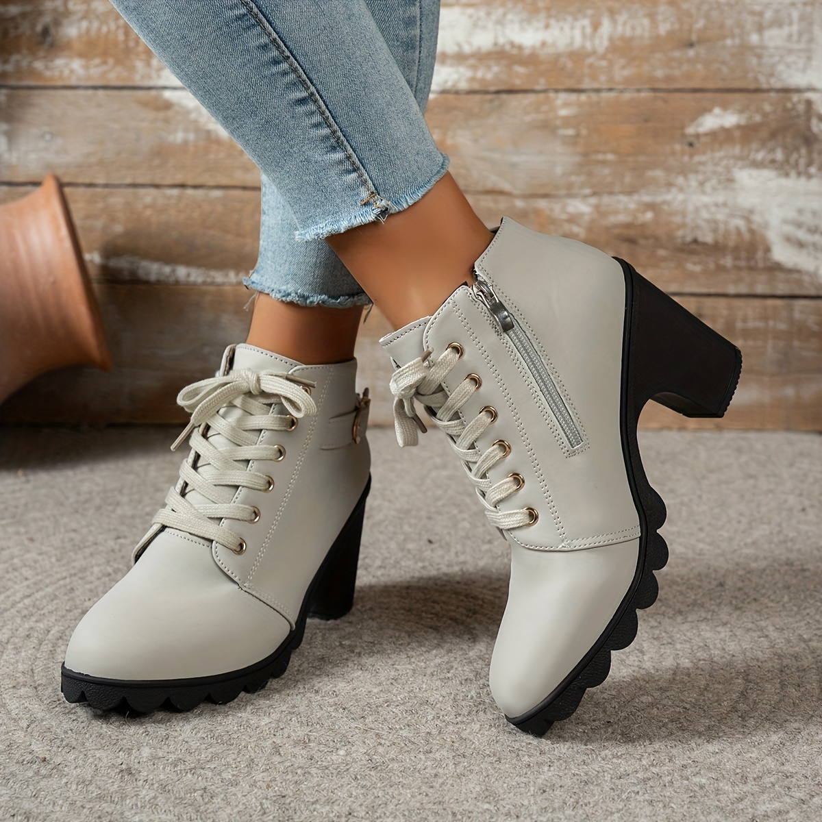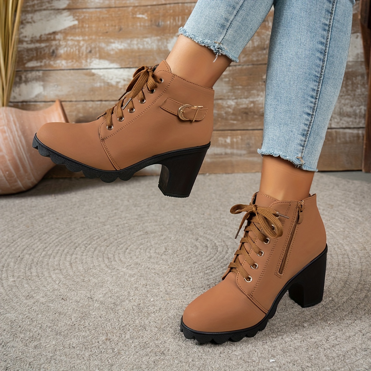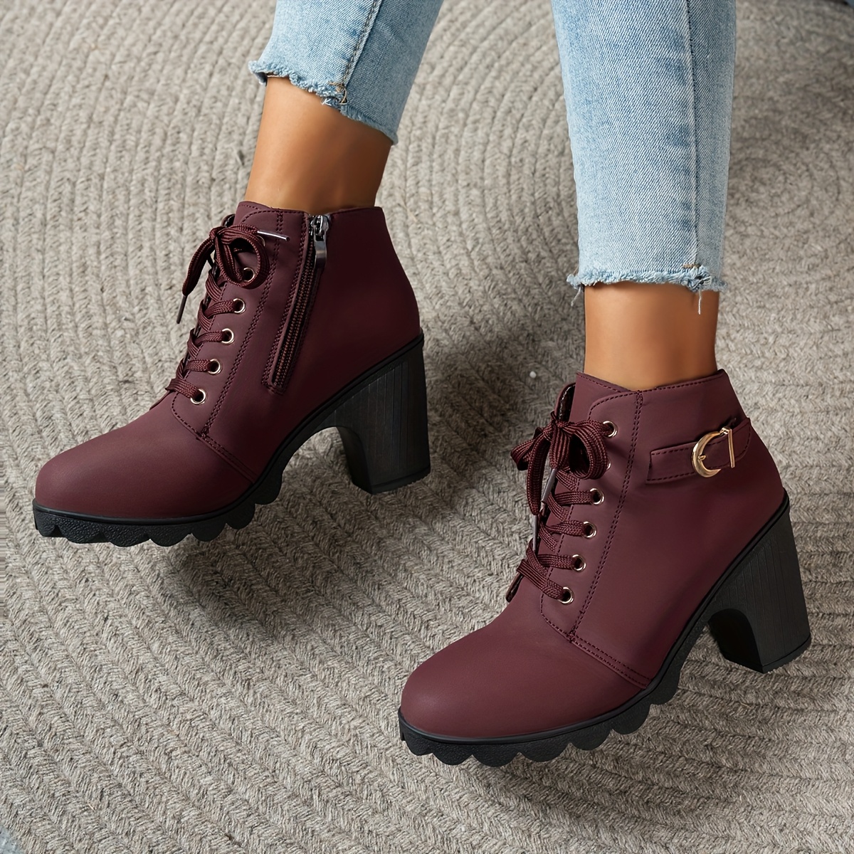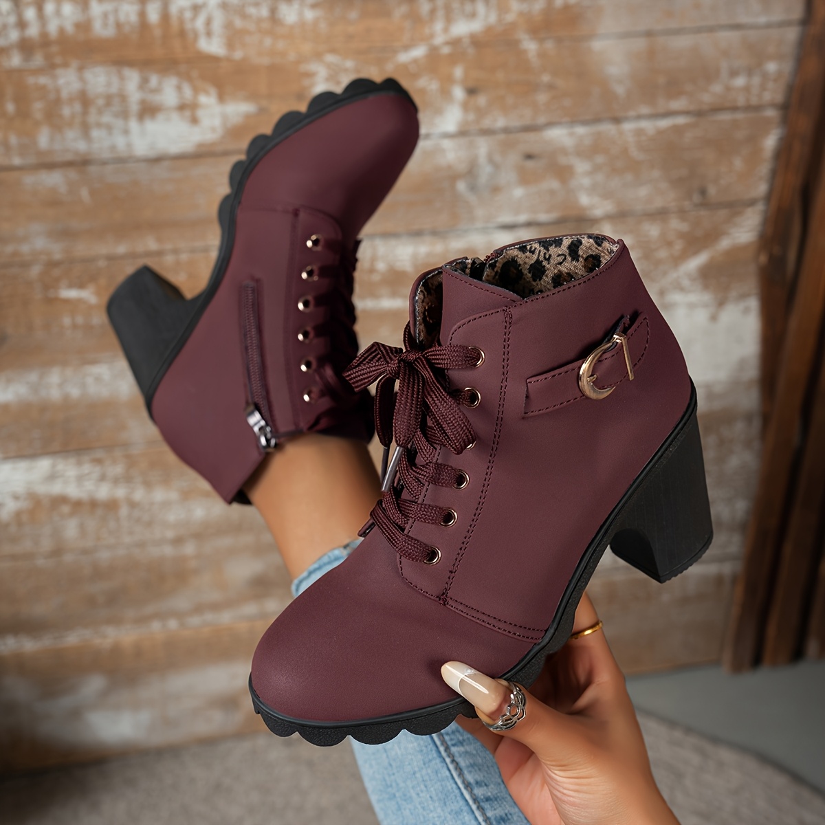 Stivaletti alla caviglia con tacco largo e fibbia di alta qualità, scarpe da donna