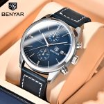 Orologio da uomo BENYAR al quarzo con cinturino in pelle PU, cronografo,