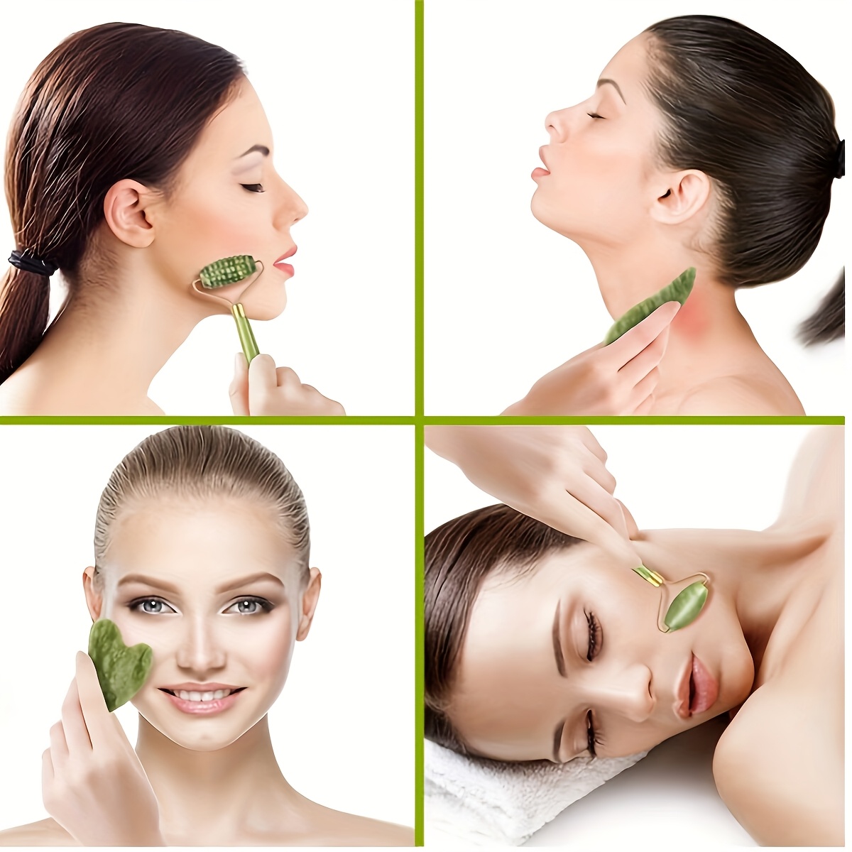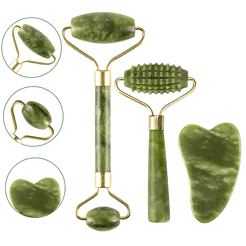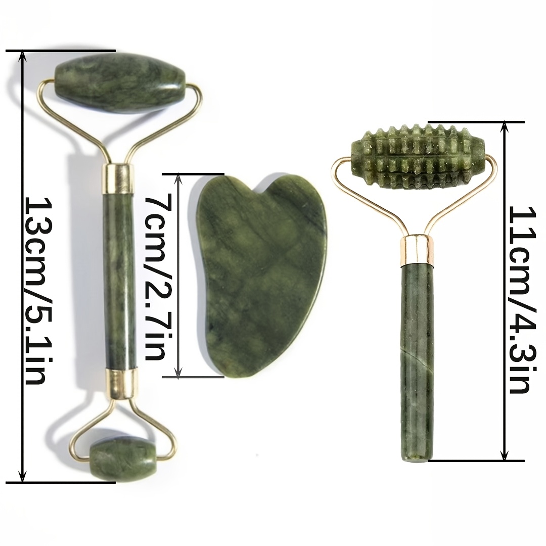 16 Aprile 2026Strumenti per massaggio in giada: Rullo in giada a doppia estremità, Rullo in giada testurizzato, Strumento Gua Sha a forma di cuore. Progettati per l’uso su viso, contorno occhi, mascella e collo. Il massaggio a rullo promuove l’assorbimento dei prodotti per la cura della pelle, libera i meridiani