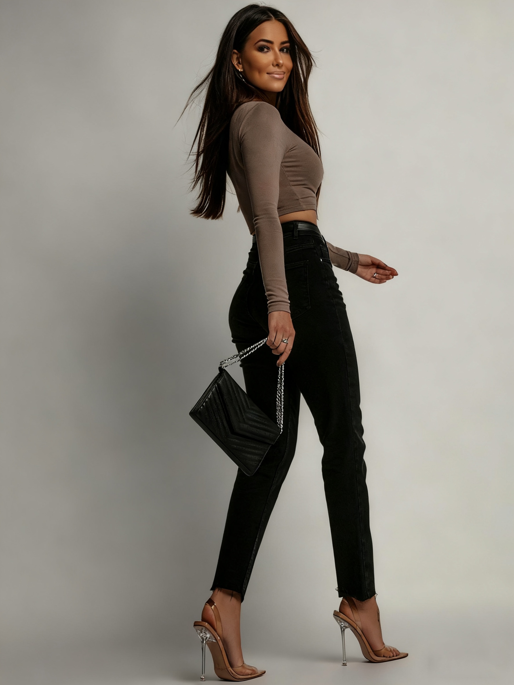 16 Aprile 2026T-shirt aderente a maniche lunghe – Elegante top slim color caffè, maglietta base da donna, maglietta base che scopre l’ombelico. Abbigliamento elegante da donna, alla moda e versatile, abbigliamento autunnale e invernale