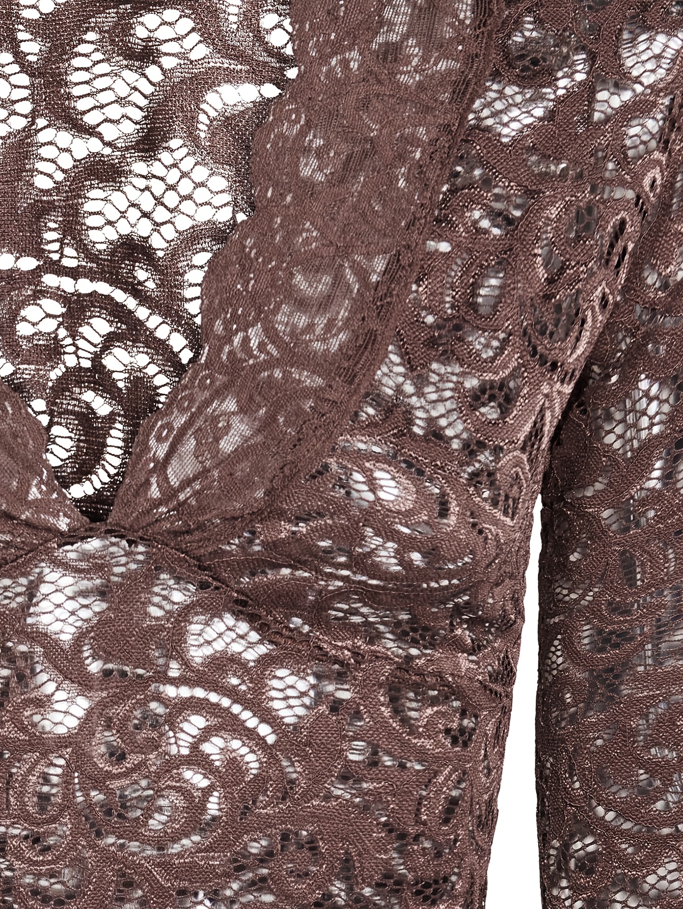 Top da donna minimalista a vita stretta in tinta unita con patchwork di pizzo in stile francese