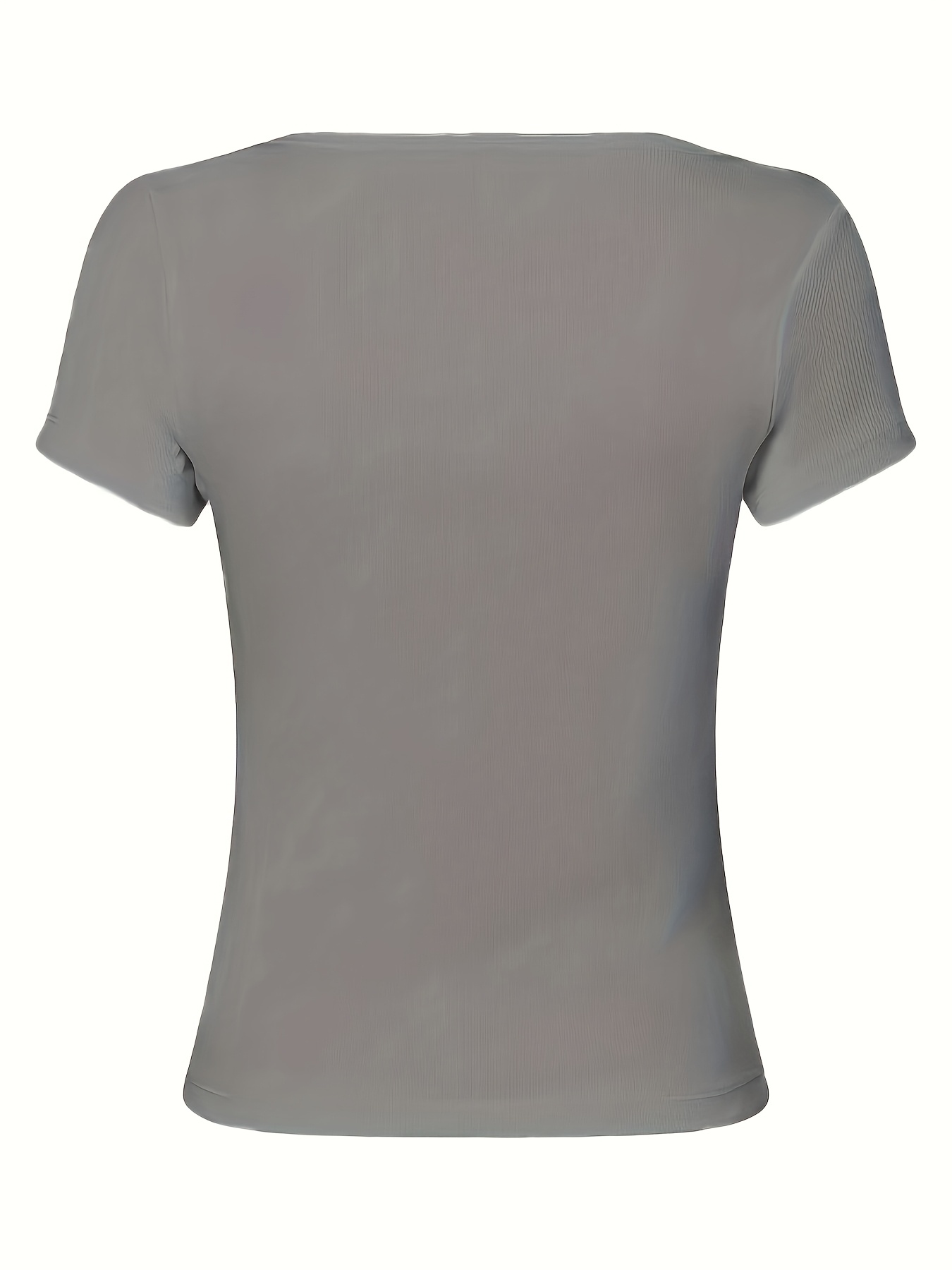 16 Aprile 2026T-shirt da donna elegante con design direzionale a orecchie da gatto, bottoni, stile alla moda, perfetta per il lavoro e gli appuntamenti
