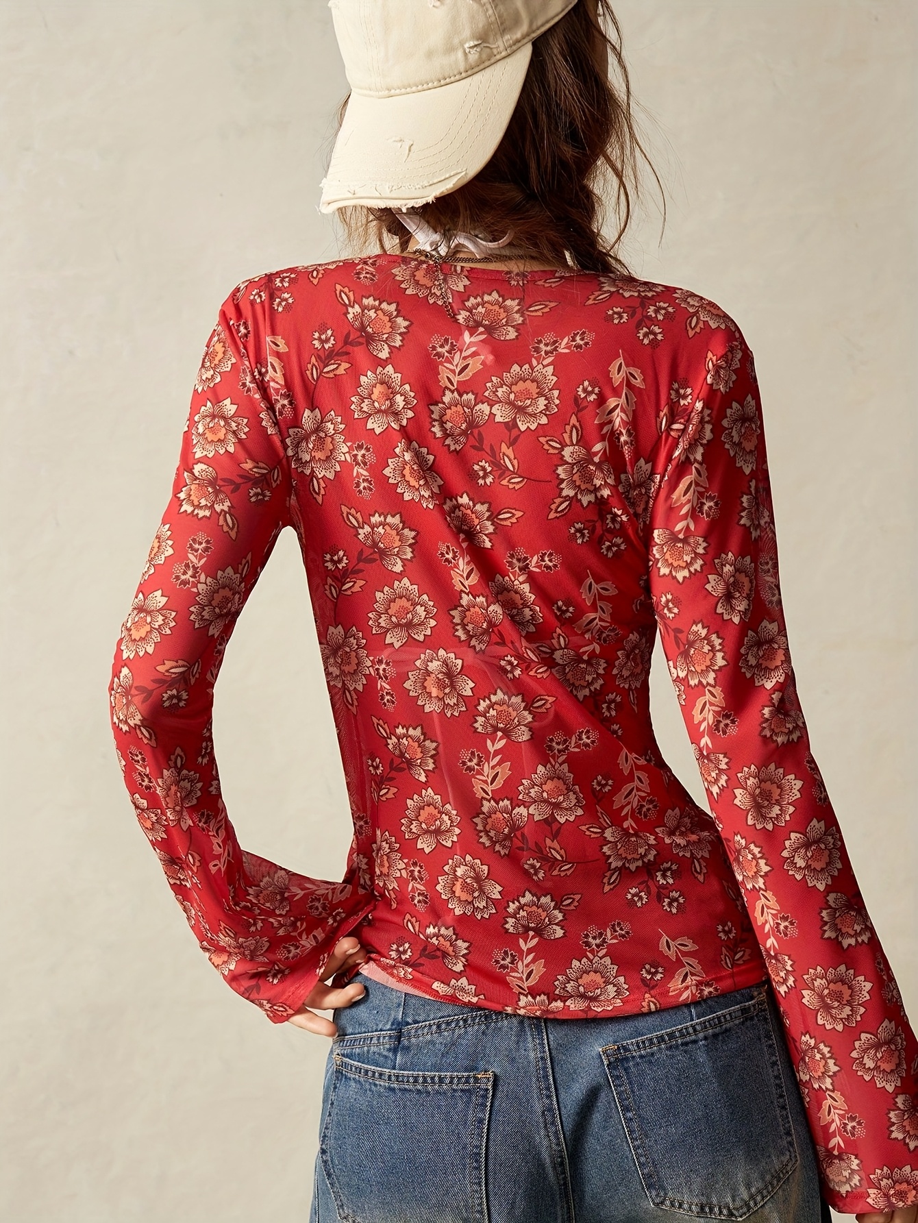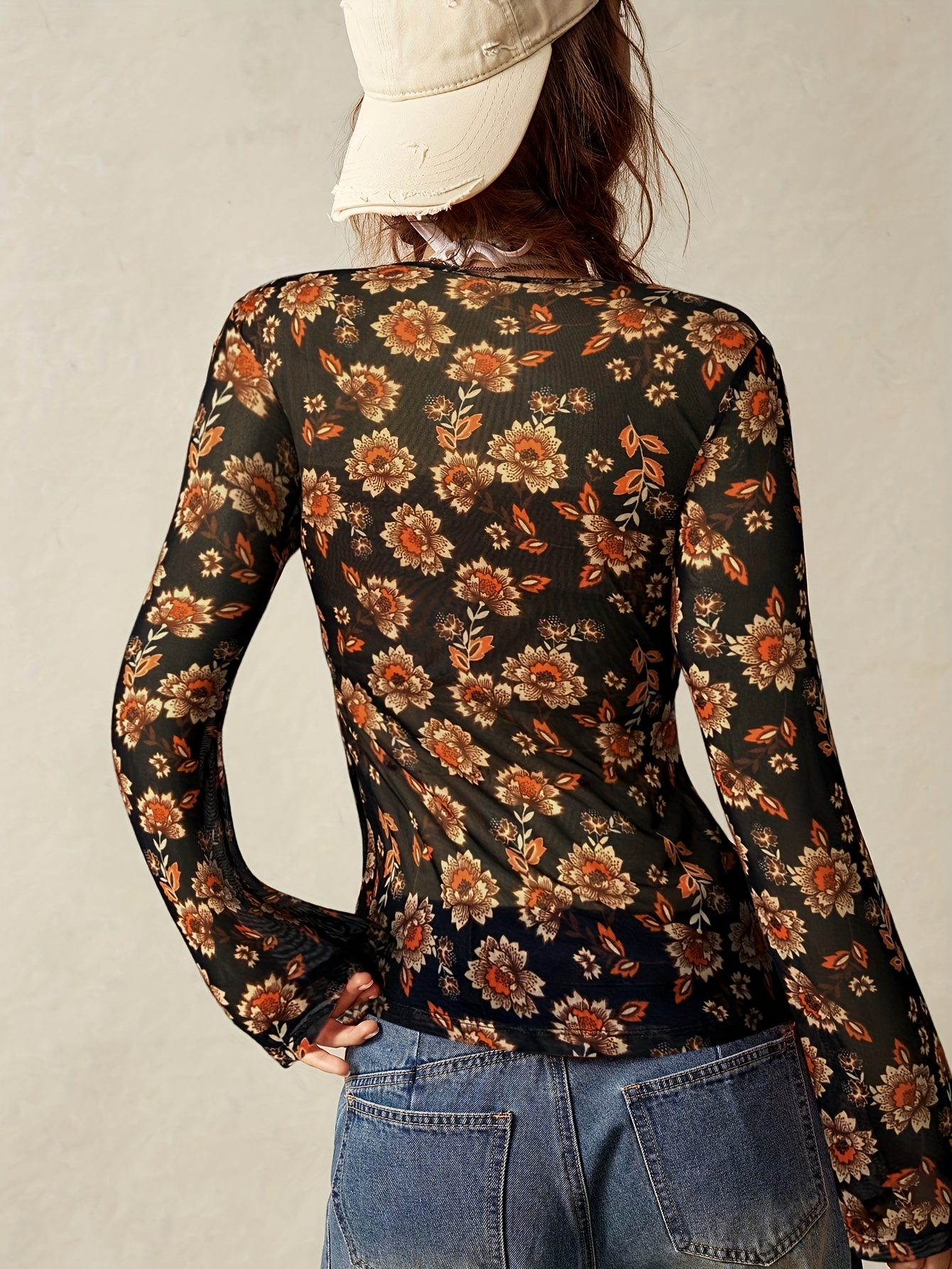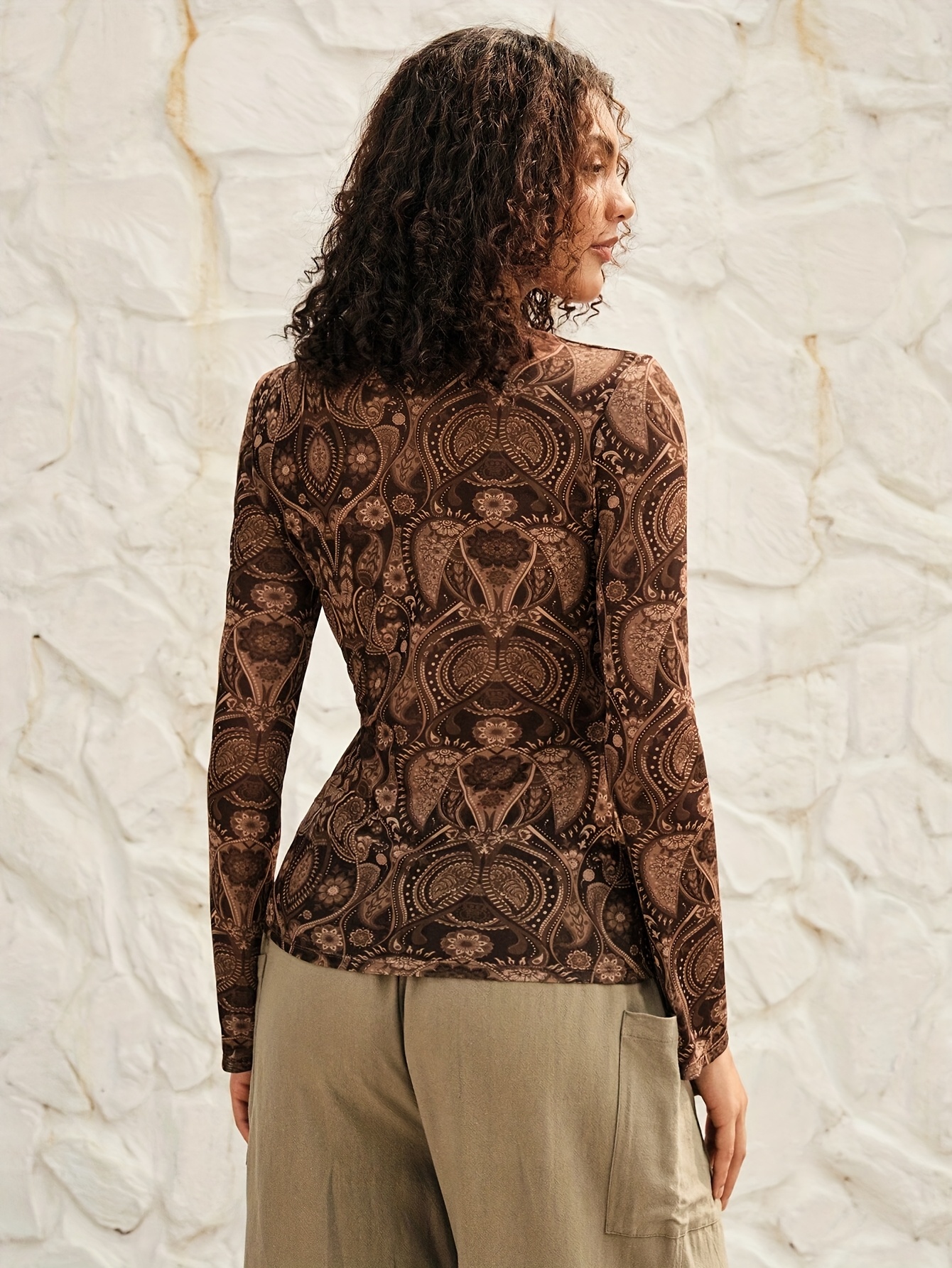 16 Aprile 2026Top da donna elegante bohémien casual in mesh stampato, vestibilità slim, scollo a V, primavera/estate