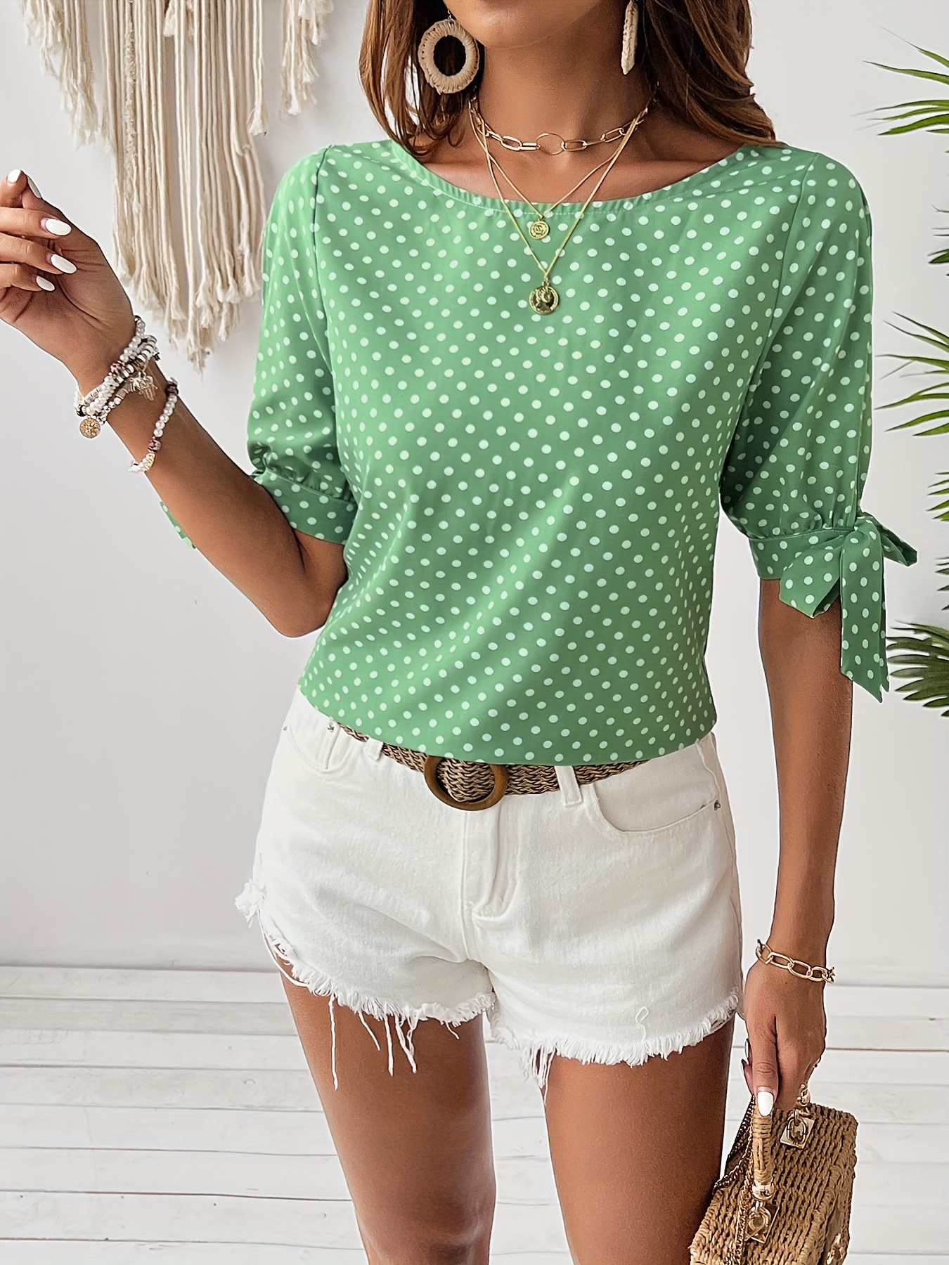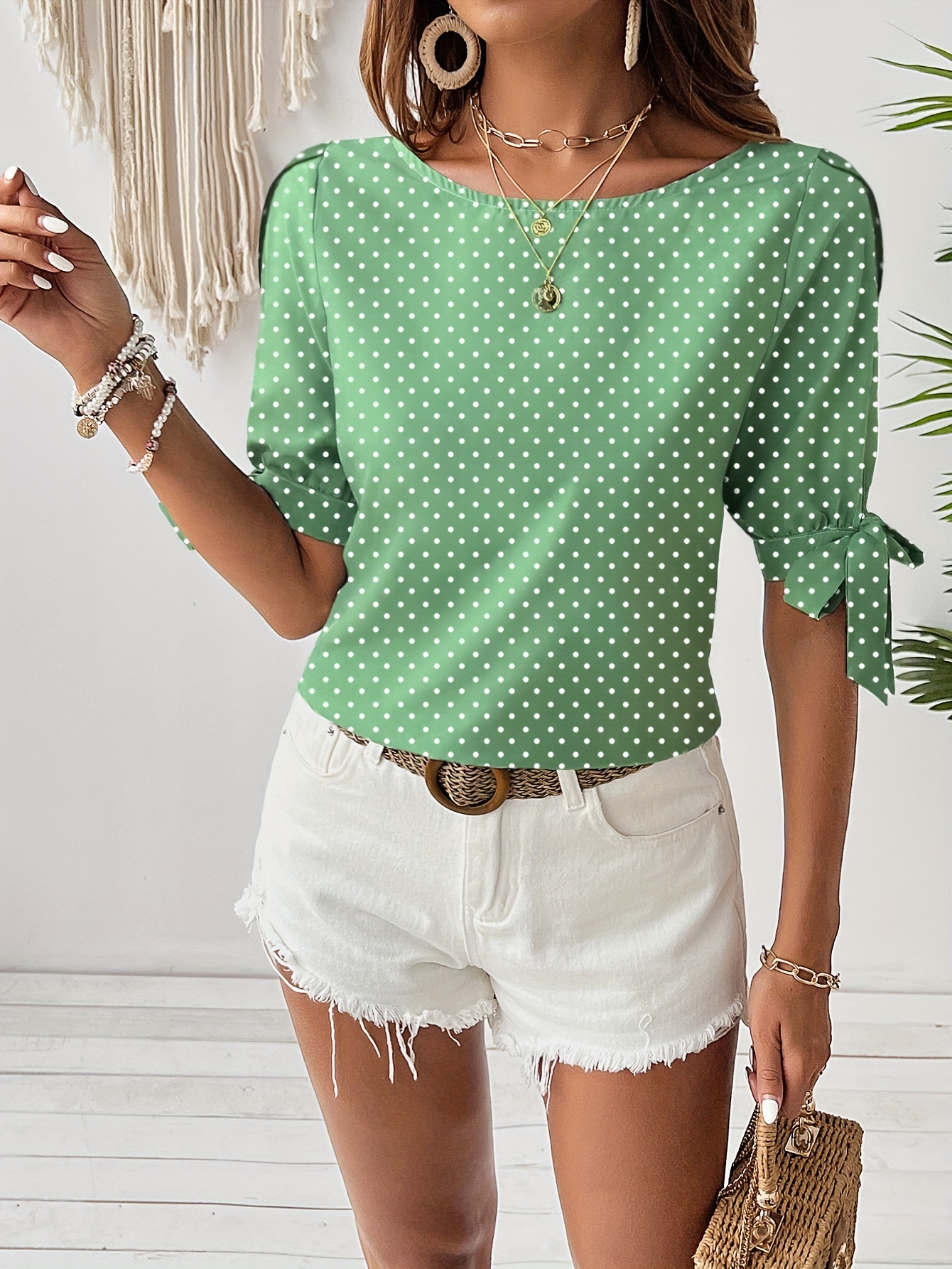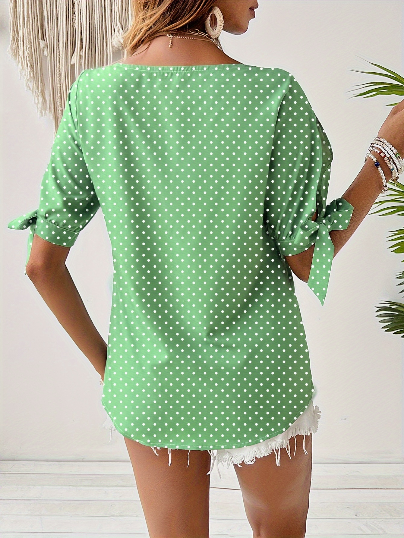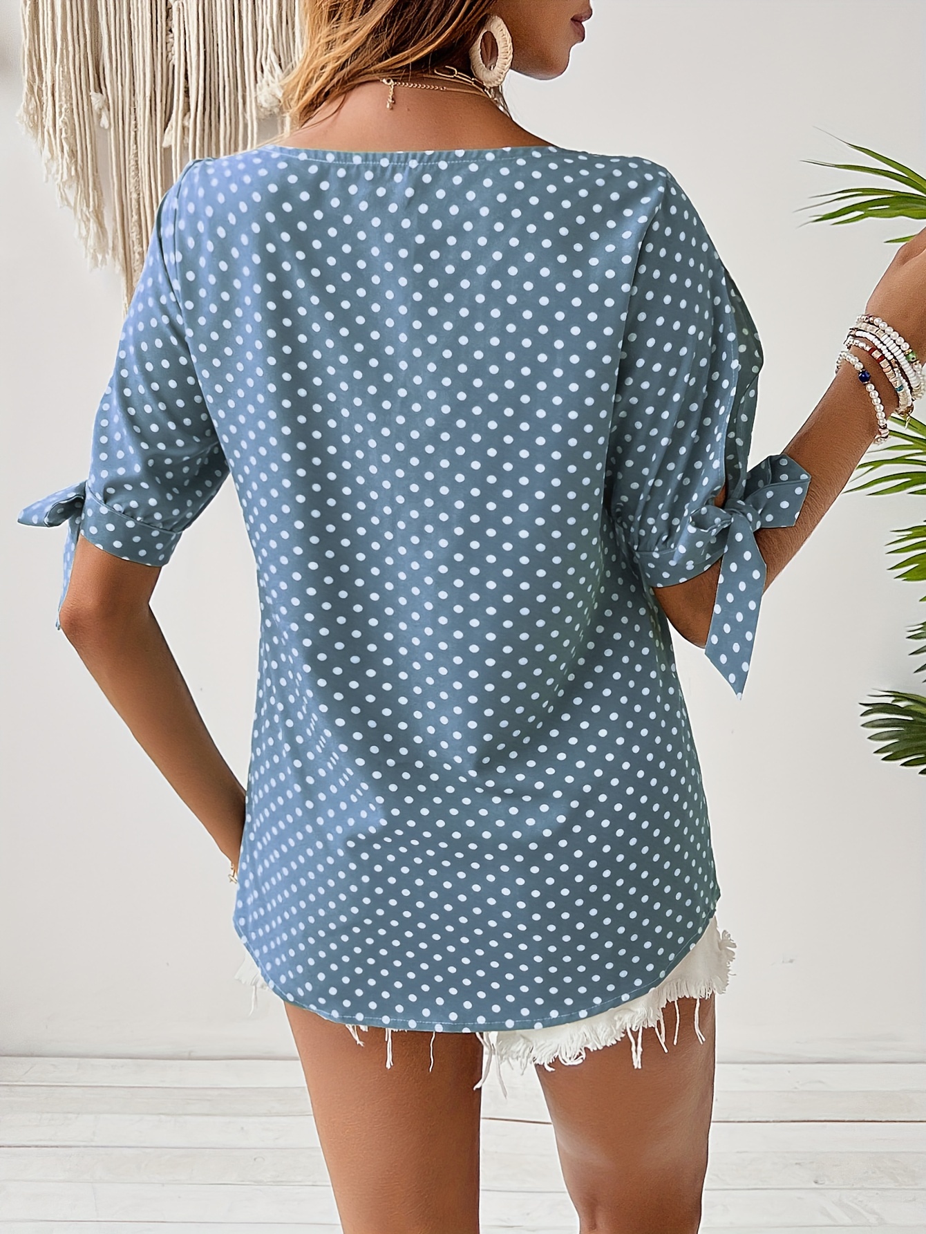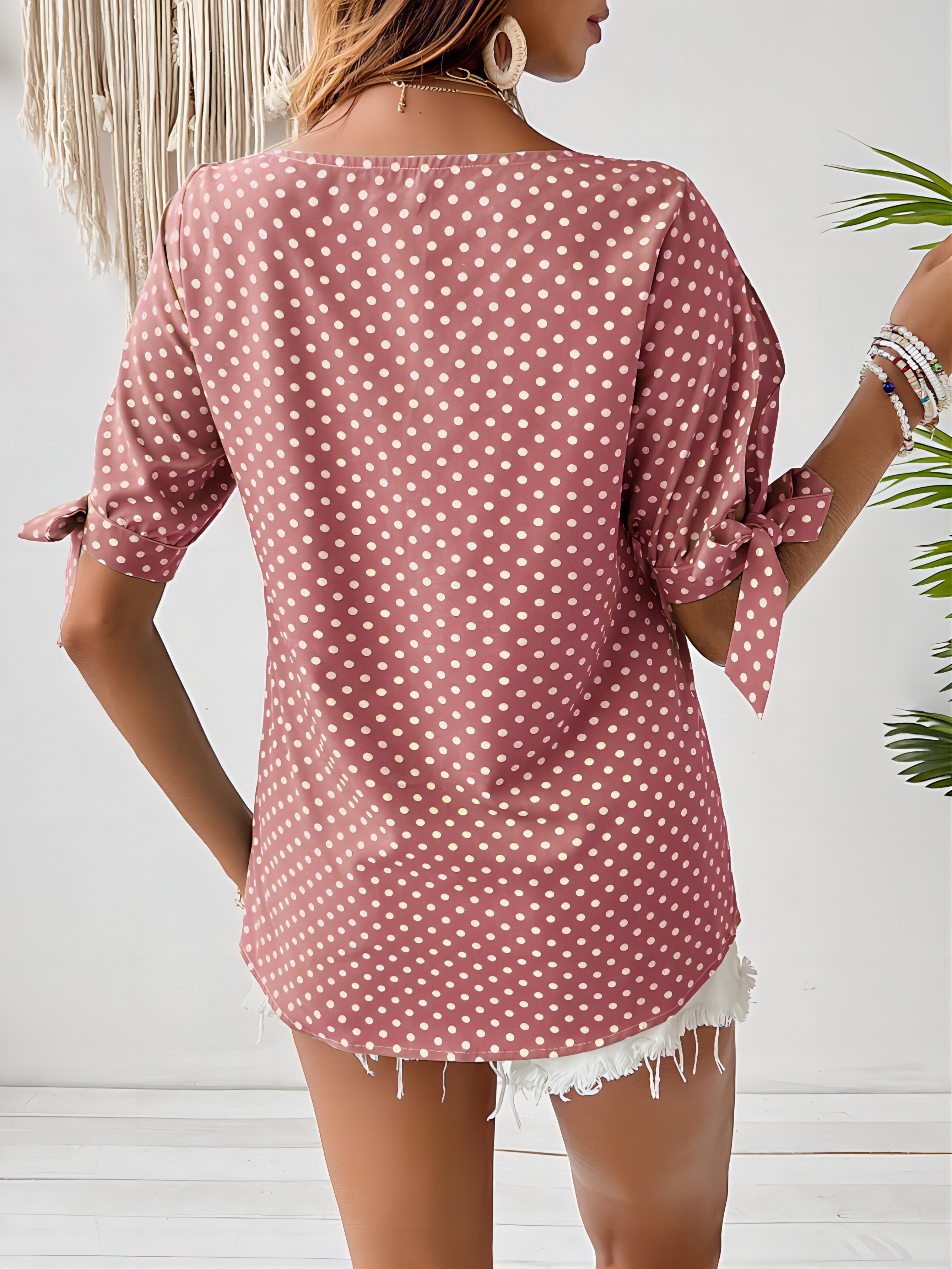 16 Aprile 2026Top donna a pois con polsini annodati e maniche a spacco, ideale per l’uso quotidiano