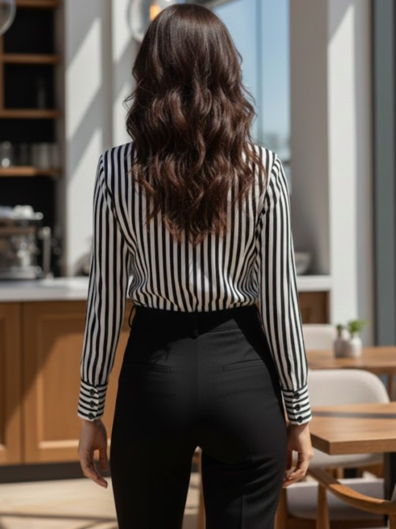 16 Aprile 2026Top elegante da donna a maniche lunghe a righe, moda europea e americana cross-border