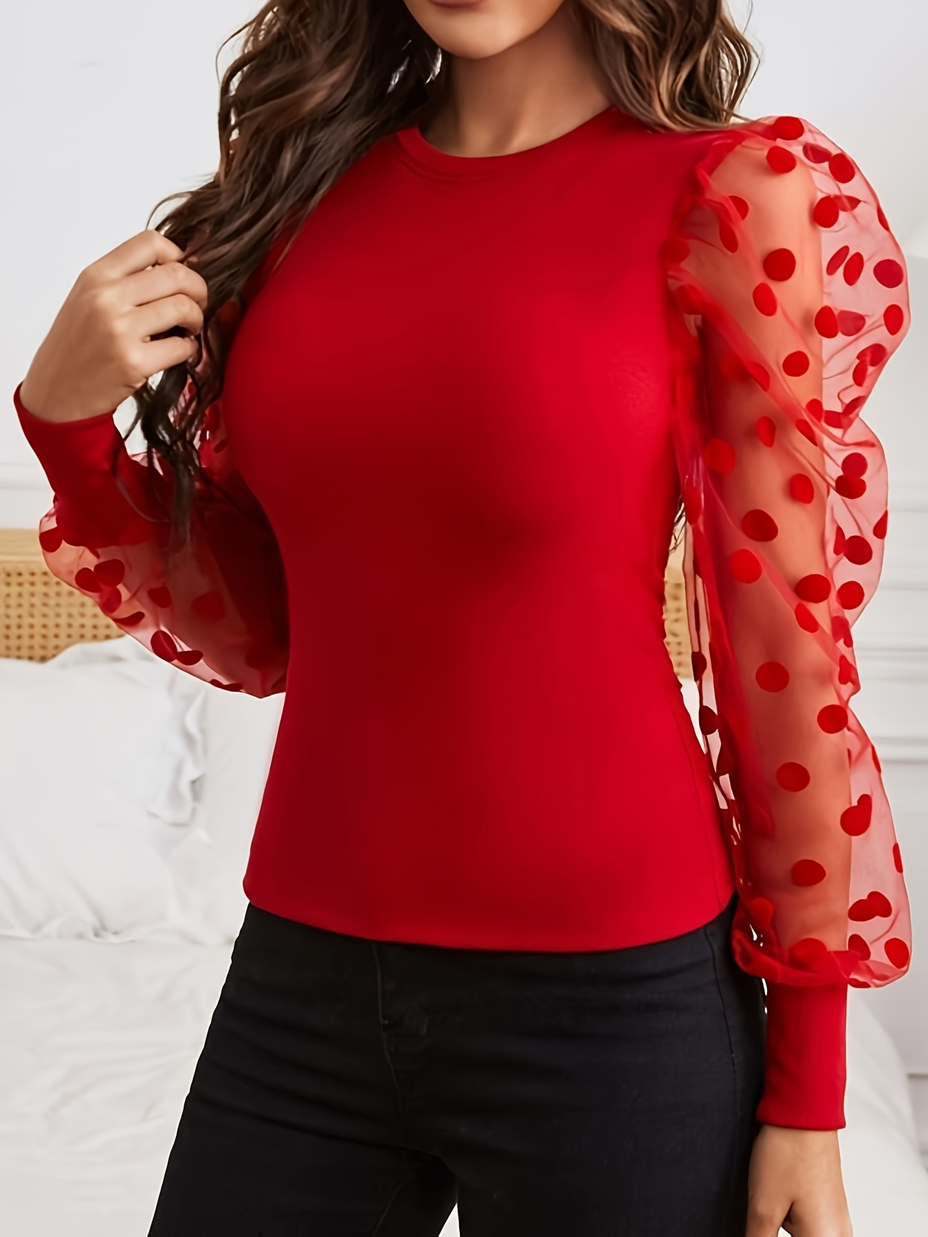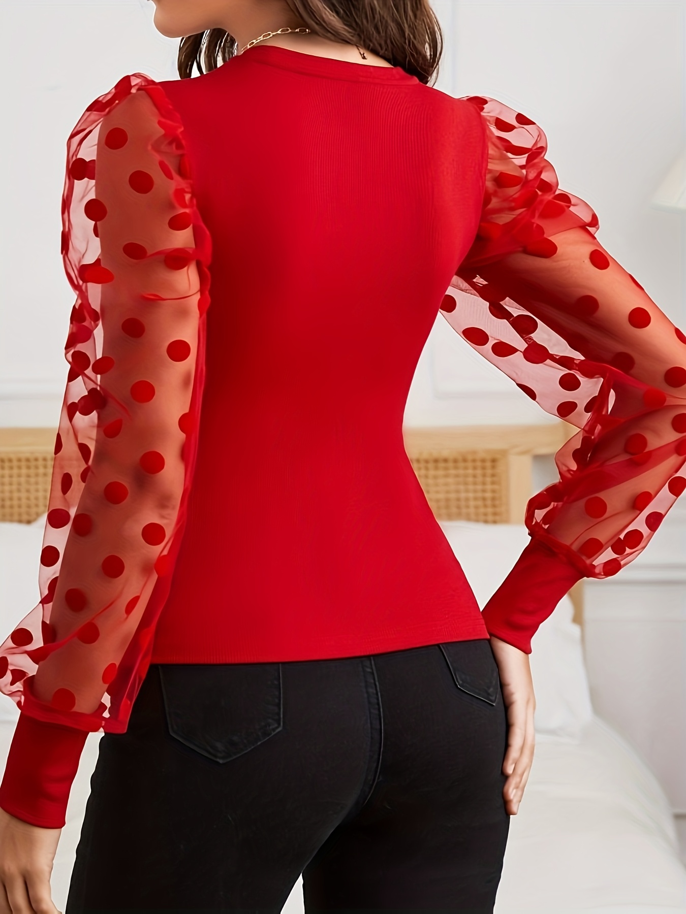 16 Aprile 2026Top Rosso con Maniche in Mesh a Pois