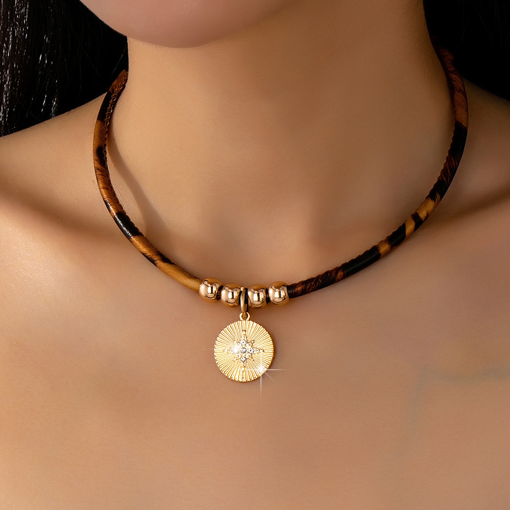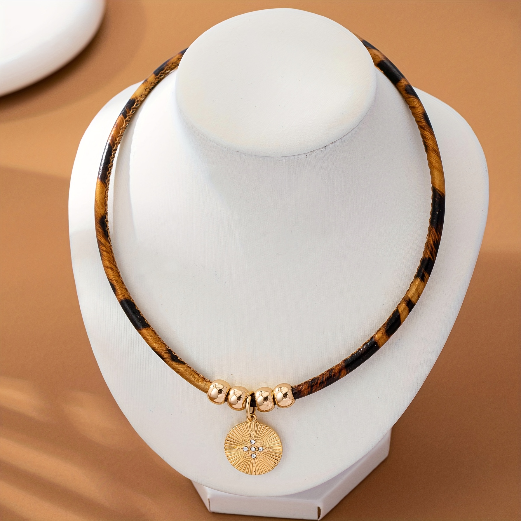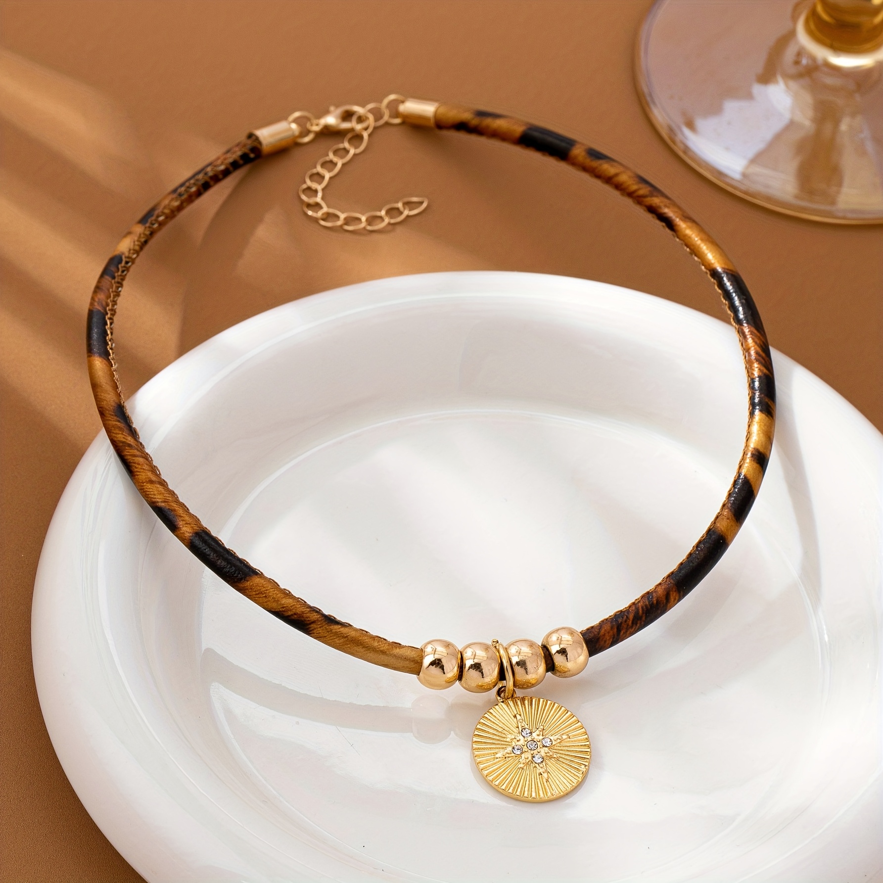 21 Febbraio 2026Collana alla Moda con Stampa Leopardata in Pelle PU, Elegante e Bohemien, con Pendente a Stella a Otto Punte, Adatta a Diverse Occasioni
